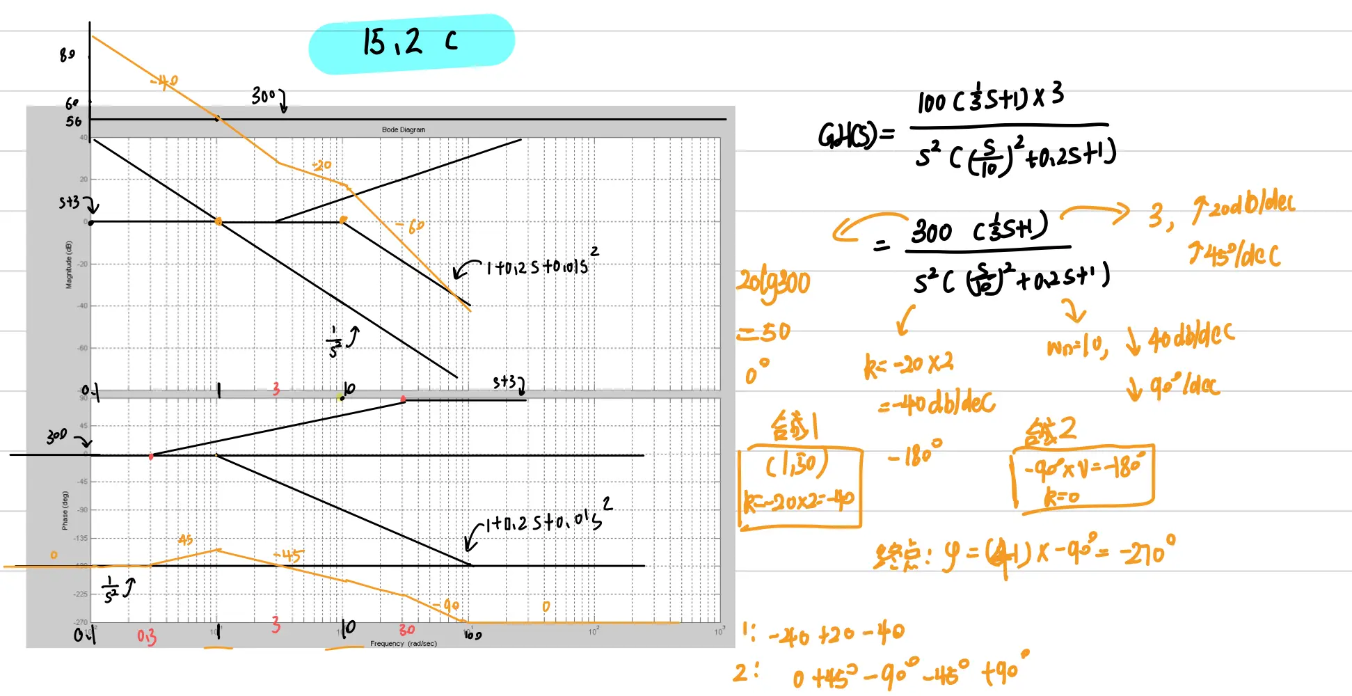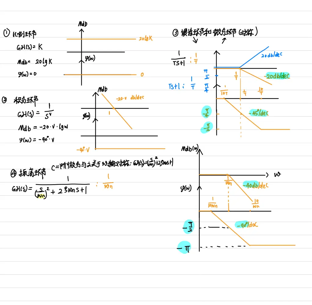 - 【易错点】:1. 典型环节注意不要画在K上!要画在0分贝线上! 2.两个相同的典型环节,注意要画图加倍!!不要忽略!