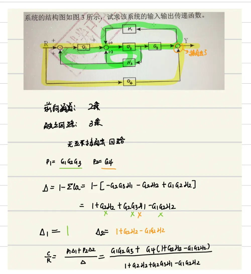- Step1:按照上图找反馈(按住一个比较点然后对比上图),串联,并联等基本环节