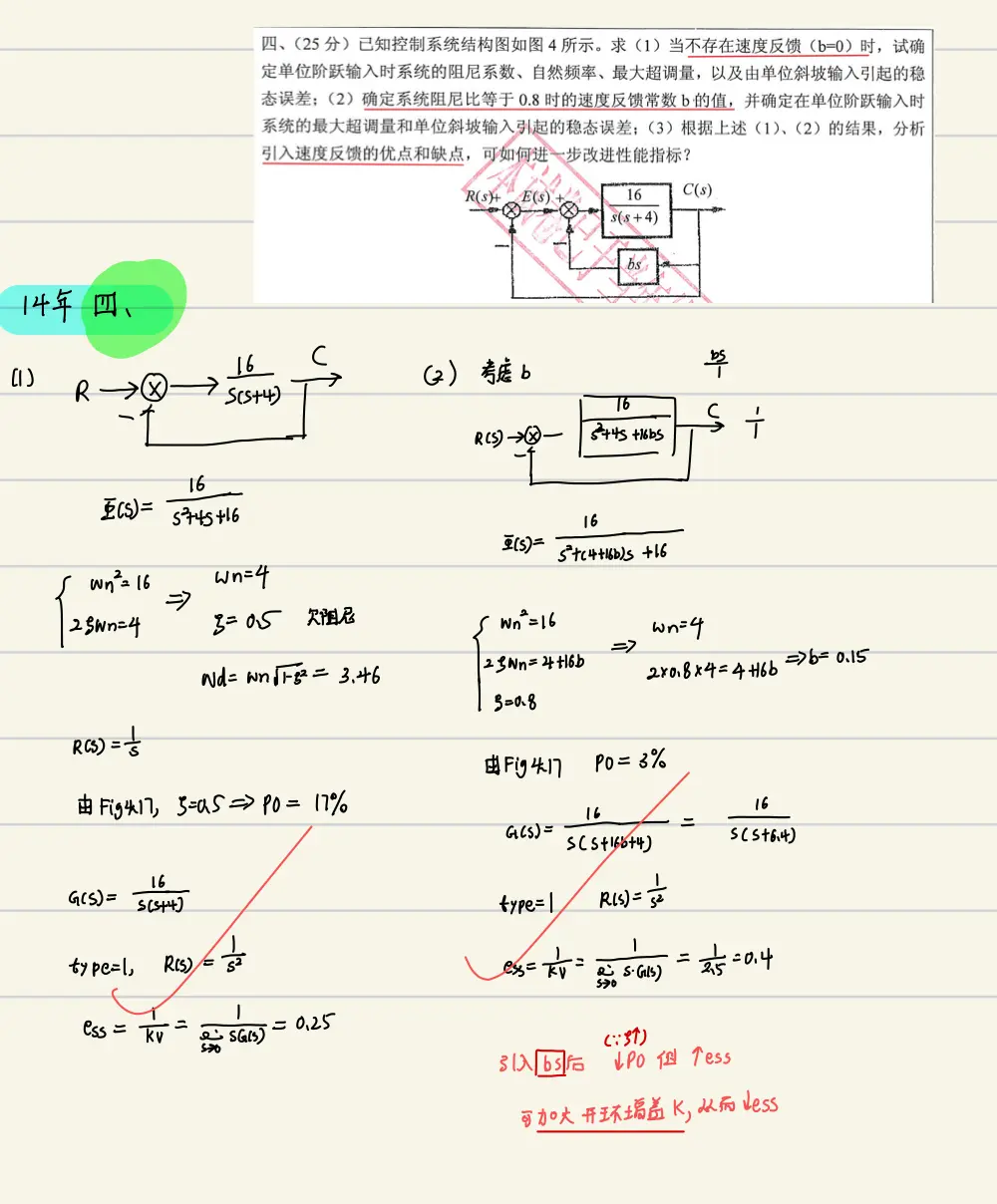 ①给一个阶跃响应图,让你写出各个性能参数