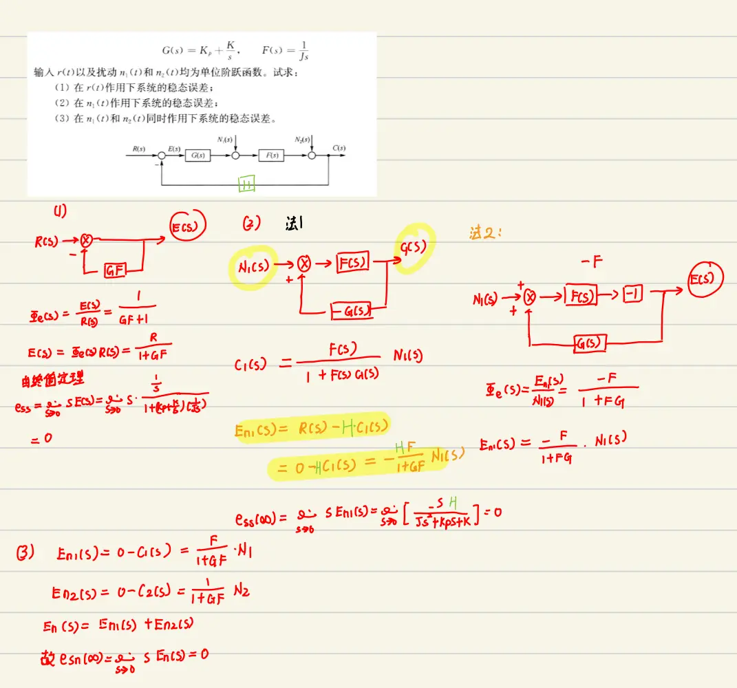*给多输入结构框图求稳态误差:①求出