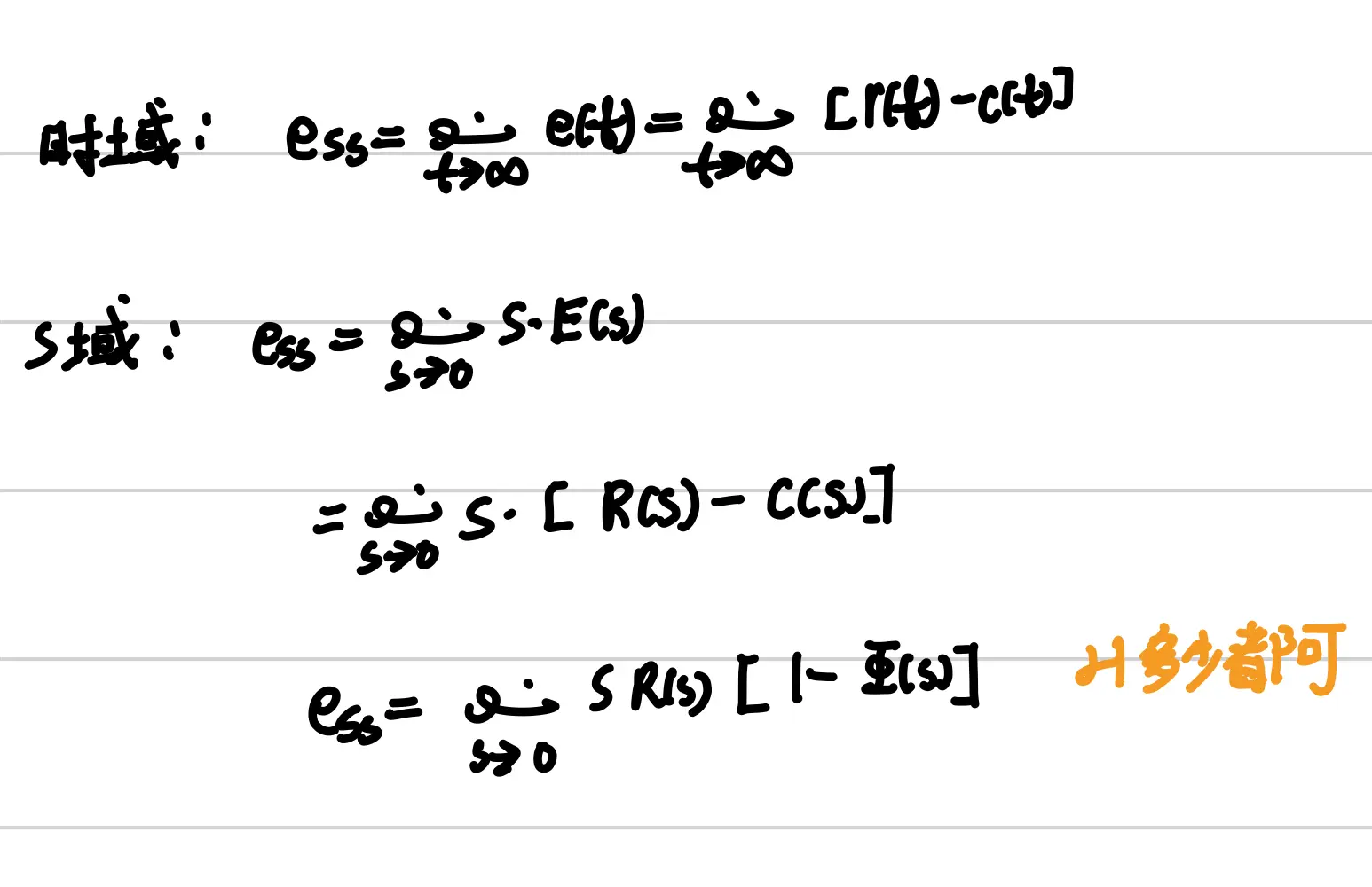 稳态误差推导: