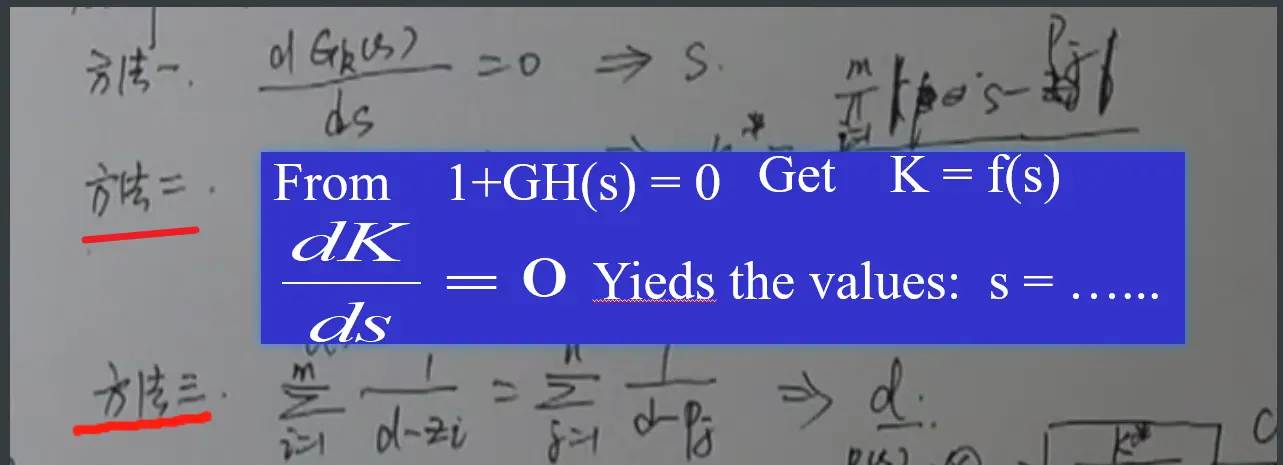 - 给定一个闭环极点的值,确定对应的K值:Rule9:K = 所有开环极点到s连线长度之积/所有开环零点到s连线长度之积;给定一个闭环极点的值求其他极点,若给的是单实极点,则用长除法,给的是二阶ζ的值,就用比较系数法;若知道二阶极点的值,则用rule10求另一个单实极点
