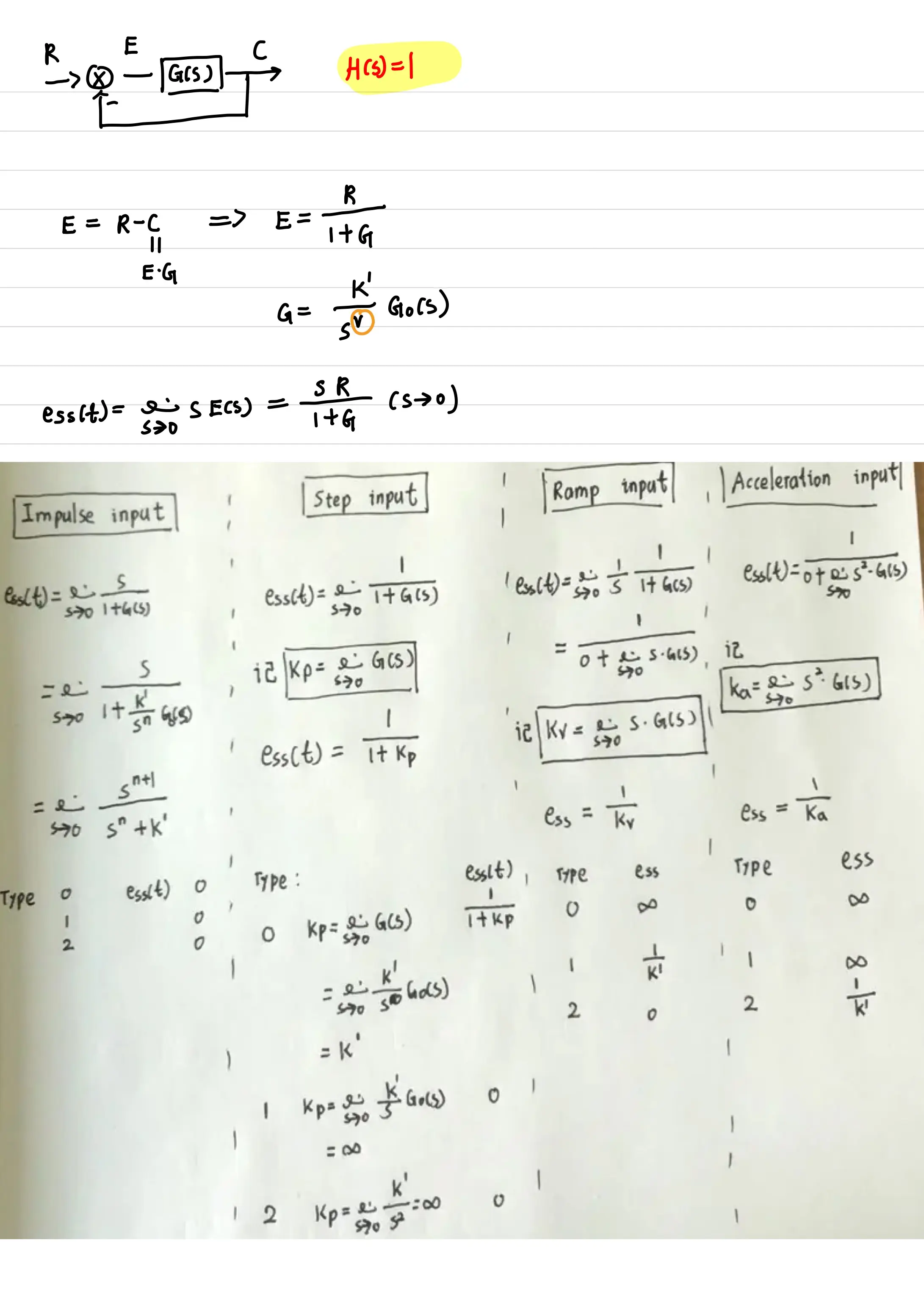 给开环传递函数求稳态误差:填表,不是单位反馈就化为单位反馈