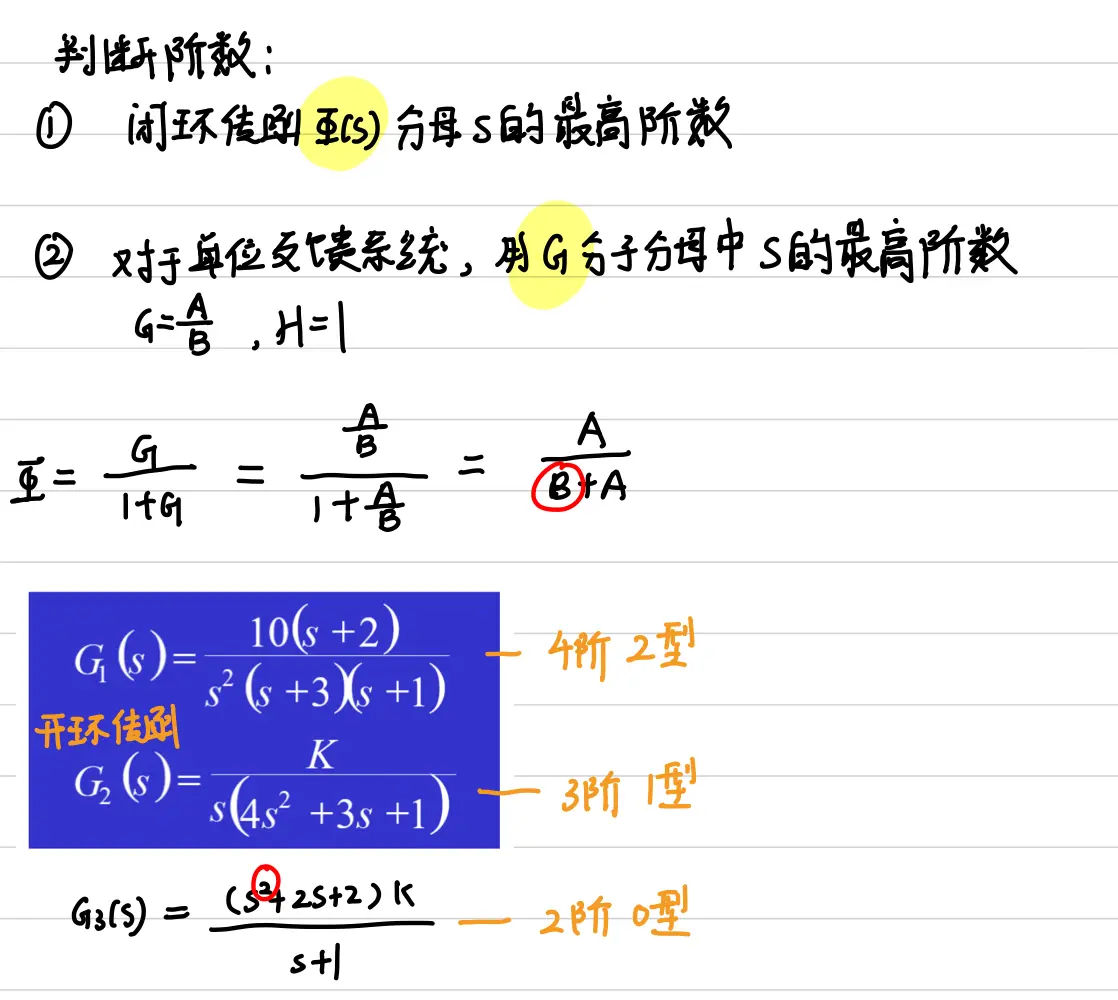 判断type: 开环传函分母能提出多少阶1/s就是几型系统
