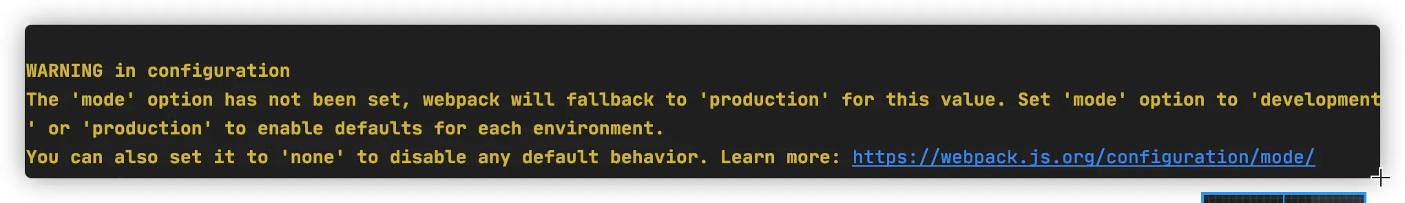 此时如果生成了一个dist文件夹,并且内部含有main.js文件说明已经打包成功,这时候可能会出现如下警告(因为我们没有配置开发环境与生产环境,但是并不影响打包的执行):