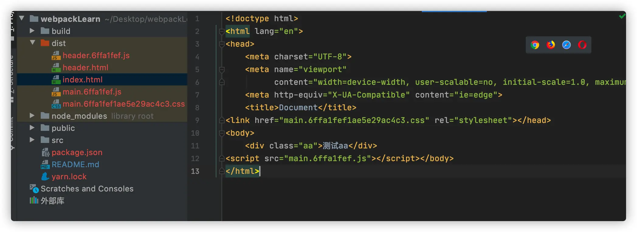 因为每次生成的js文件名都不一样,而我们都需要将js文件引入到html中,这时候我们就需要一个插件来帮助我们html-webpack-plugin