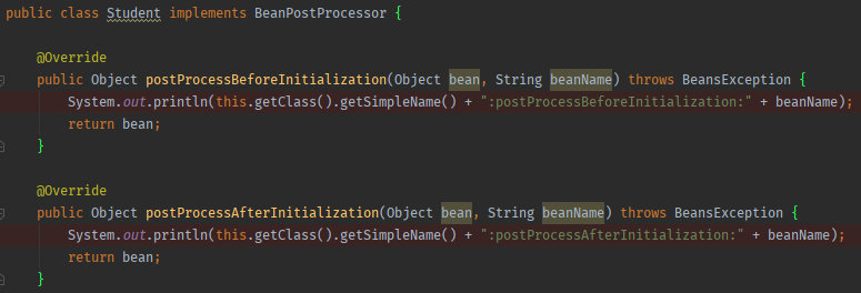 defaultListableBeanFactory.addBeanPostProcessor(new Student());