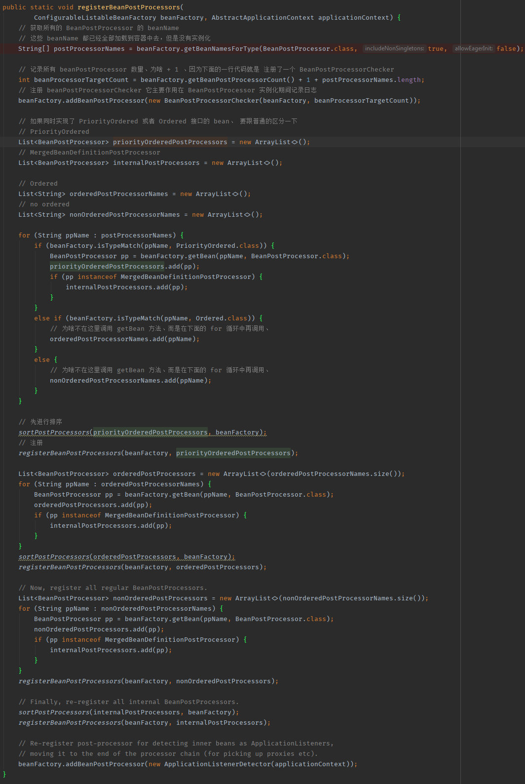 registerBeanPostProcessors(beanFactory, priorityOrderedPostProcessors);