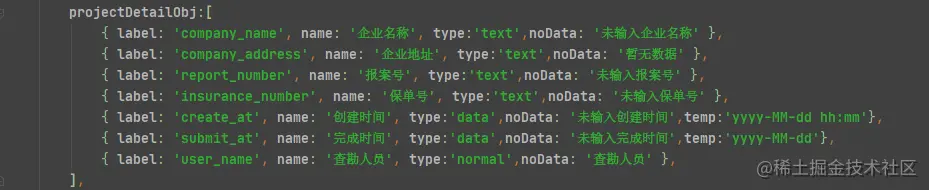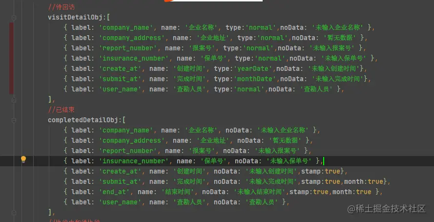这个是传入的配置对象,在这里配置type,和字段名,没有数据的显示等等,上面的这个是改完后的,下面这个是改之前的