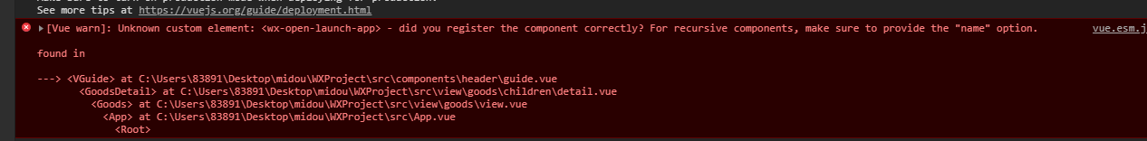 这时候你会发现,报错了,看报错信息为没有注册<wx-open-launch-app>组件