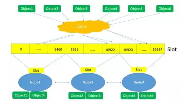根据哈希值,计算数据属于哪个槽。