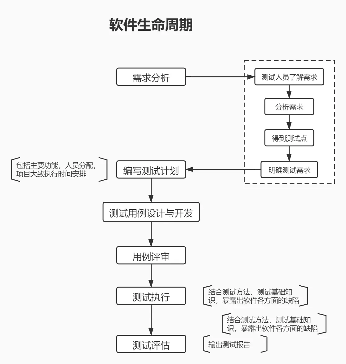 经过这5步,完成了软件测试的一个生命周期。但并不意味着测试工作结束了,由于软件产品是不断迭代更新的,因此,又会按照此生命周期,进入到下一次循环。
