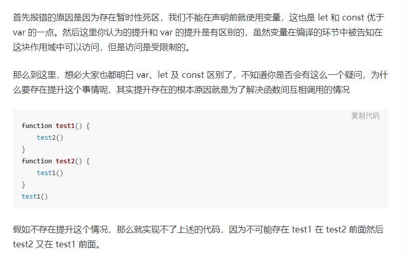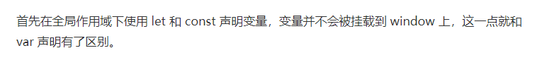 关于let var const MrLiAng105105 2020-06-17 81 阅读1分钟 1、 2、 var a = 1 let b = 1 const c = 1 console.log(window.b) // undefined console.log(window. c) // undefined function test(){ console.log(a) let a } test()