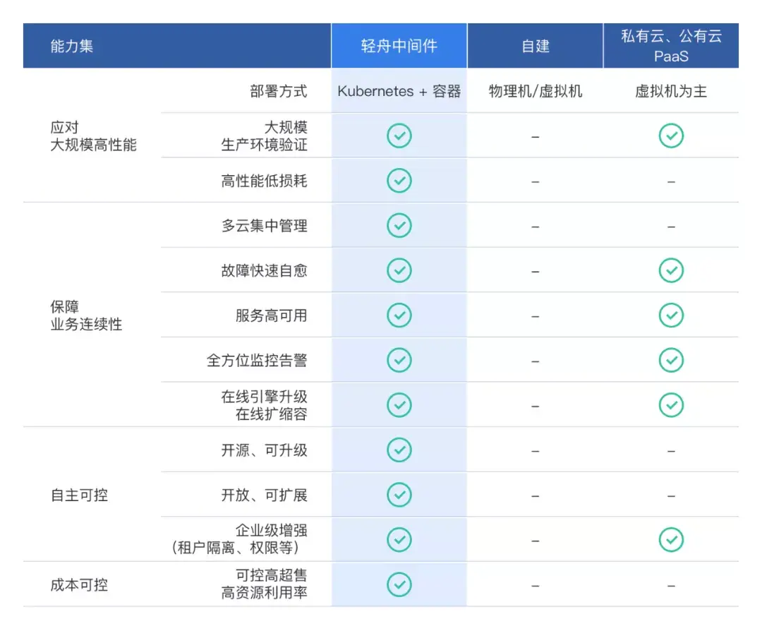 相较于传统中间件,轻舟中间件在SLA保障、性能、成本等方面亦有突出表现: