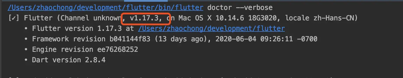 使用flutter doctor进行查看当前版本是否已经成功。