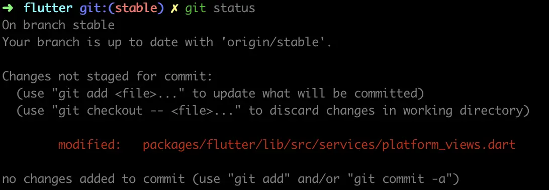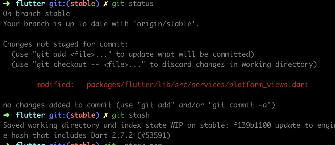 第七步:将FlutterSDK的修改取出来,然后stash起来