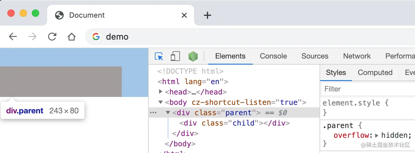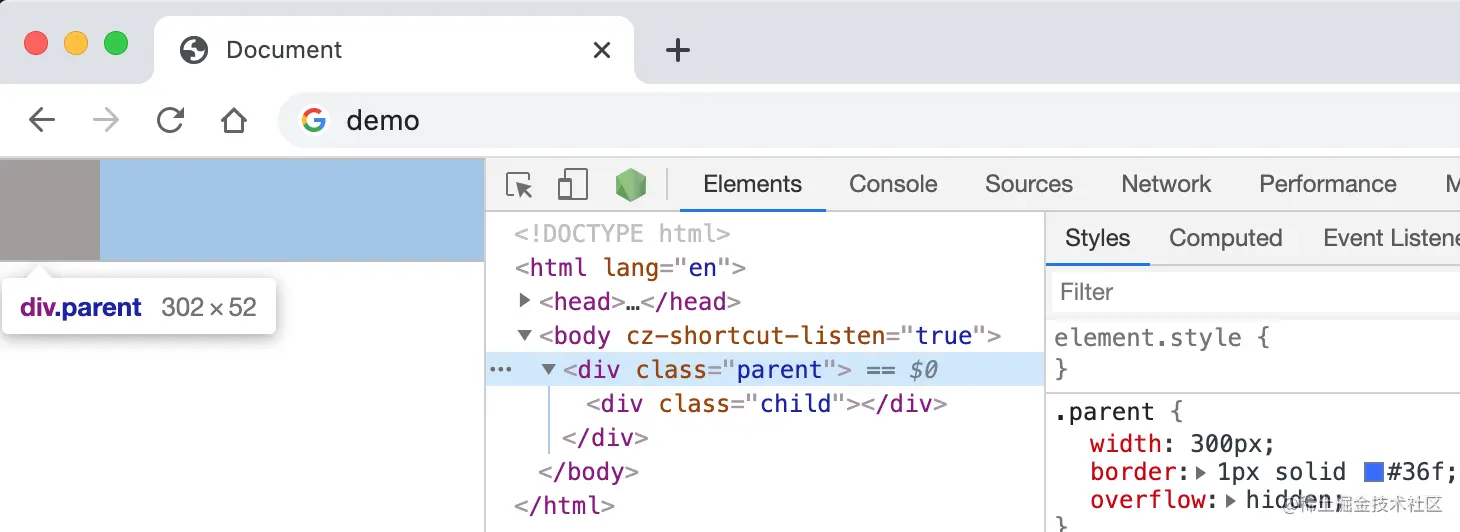 例如在本文开篇的第一个父子元素边距折叠的问题,我们只需在父元素上增加 overflow: hidden 触发 BFC 即可: