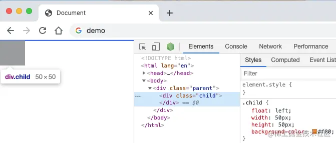 可以对示例中的 parent 添加 overflow: hidden 来触发 BFC,从而使容器高度恢复: