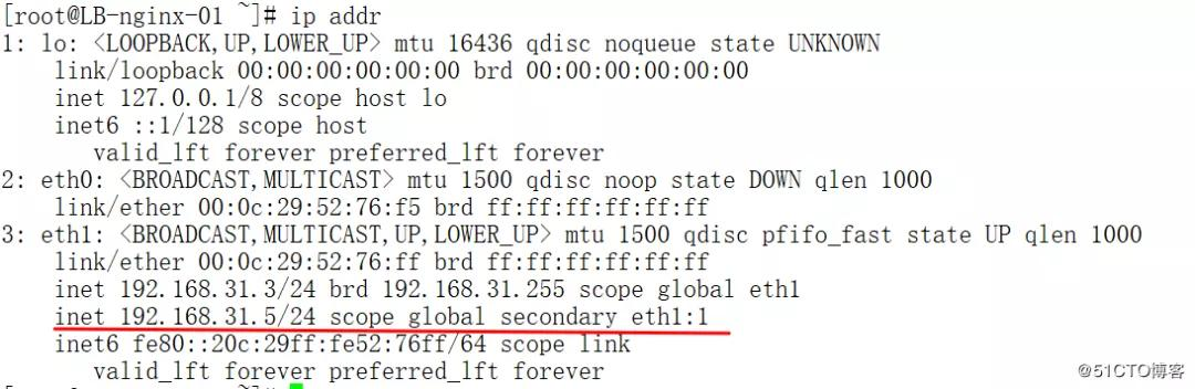 - virtual_ipaddress {…}定义虚拟IP地址,可以配置多个IP地址,这里我定义为192.168.31.5,绑定了eth1的网络接口,虚拟接口eth1:1