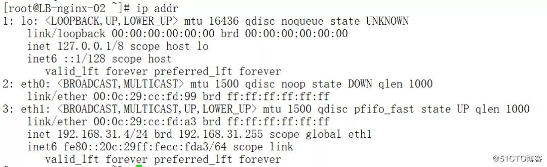 然后修改备节点的配置文件,保存退出后启动keepalived,不会生成虚拟IP,如果生成那就是配置文件出现了错误。备节点和主节点争用IP资源,这个现象叫做“裂脑”。