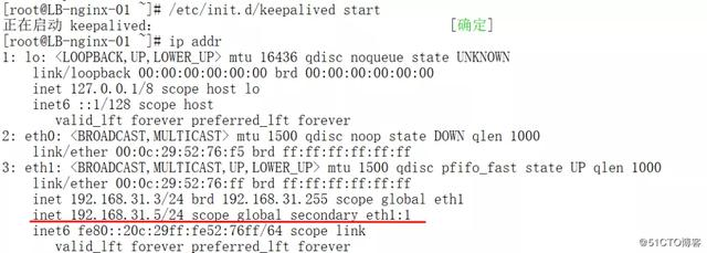 修改好主节点之后,保存退出,然后启动keepalived,几分钟内会生成一个虚拟IP:192.168.31.5