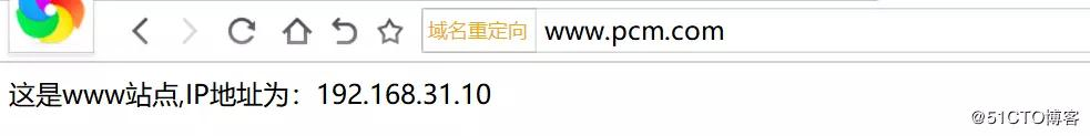 然后用浏览器打开www.pcm.com的页面,在web01上查看access.log日志记录到的客户端IP地址