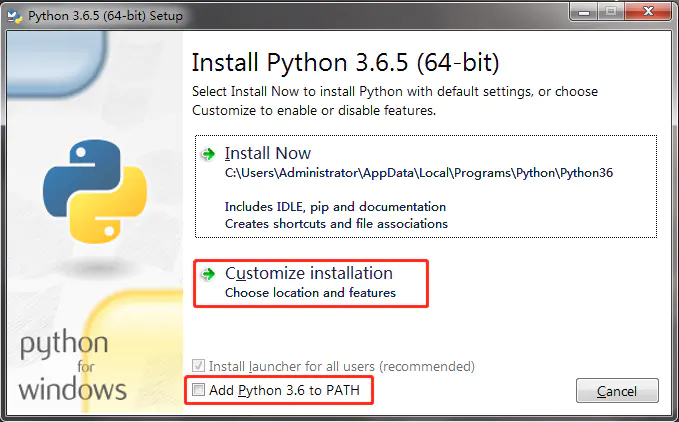 Customize installation为自定义安装地址,注意,安装地址最好不要出现以中文命名的文件夹