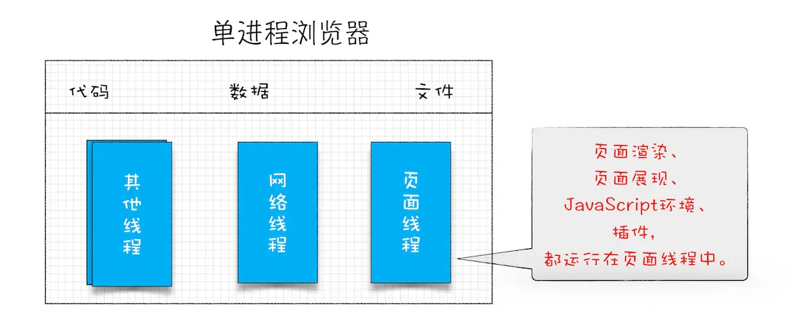 单进程浏览器是指浏览器的所有功能模块都是运行在同一个进程里,这些模块包含了网络、插件、JavaScript 运行环境、渲染引擎和页面等。