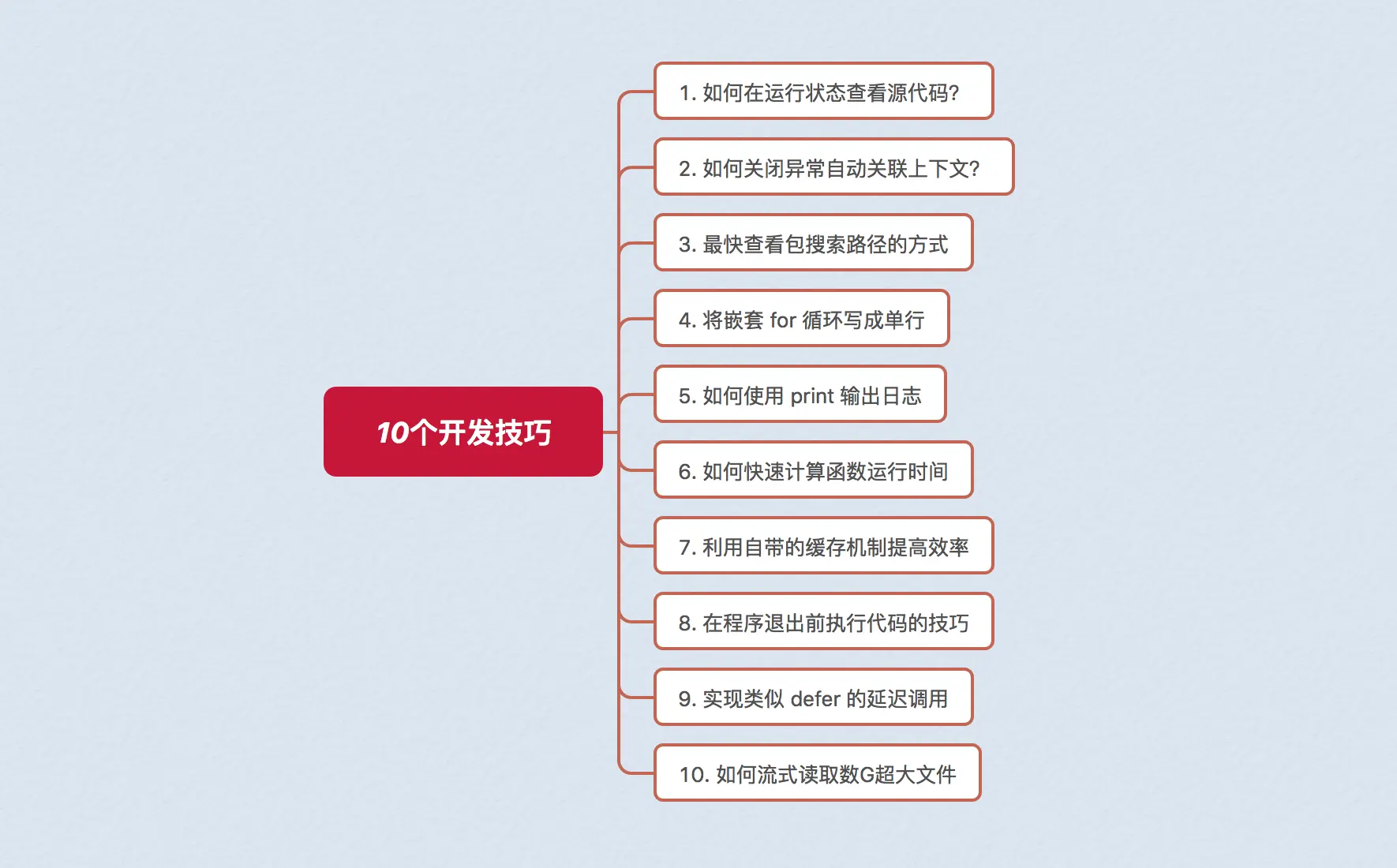 今天给大家分享 10 个我平时整理非常实用的 Python 开发小技巧,内容目录如下: