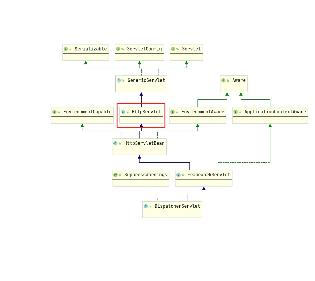 我们看下下面这个类图,DispatcherServlet这个关键的中央类,实际上是Servlet的子类,熟悉Servlet的同学都知道,之前在做Servlet开发的时候,所有的请求经过配置后都会被内部的doget和dopost方法拦截,至此SpringMvc为什么能够拦截URL也就不难分析了,拦截到url后,进入如下的流程调用链!