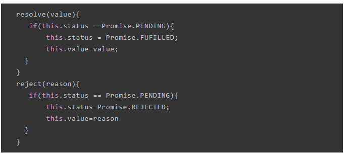 4、因为在promise中,状态是不可逆的,所以resolve和rejected需要添加判断,只有在状态为pending的情况才会去处理