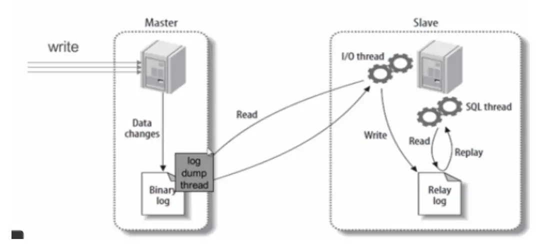 - 主库(Master)把数据库更改记录到binlog(图中的Binary Log)中;
