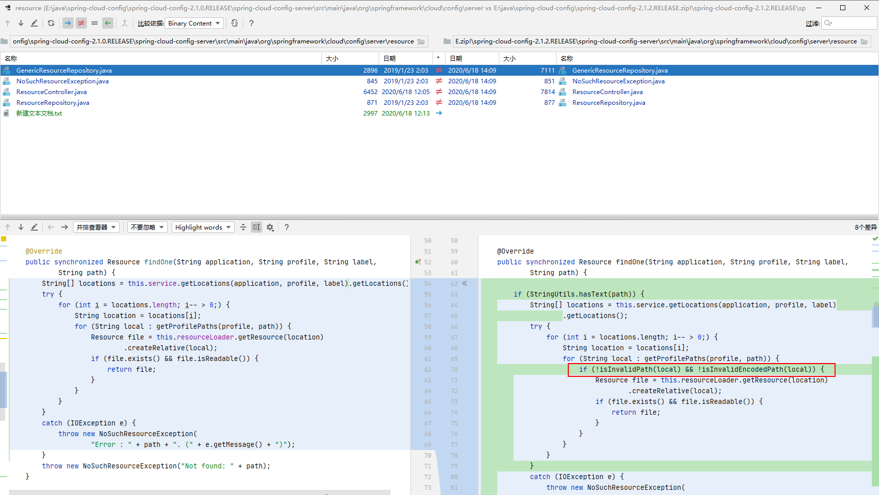 我们来看下补丁是怎么打的。在 2.1.2 代码与 2.1.0 代码进行比较。