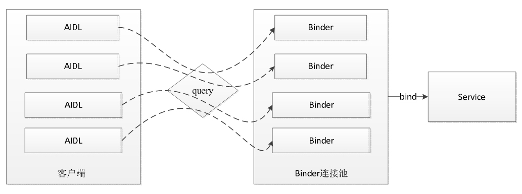 每个业务模块创建自己的 AIDL 接口并实现此接口,不同的业务模块不能有耦合,向服务端提供自己的唯一标识和其对应的 Binder 对象。