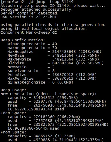图2 jmap命令显示部分信息