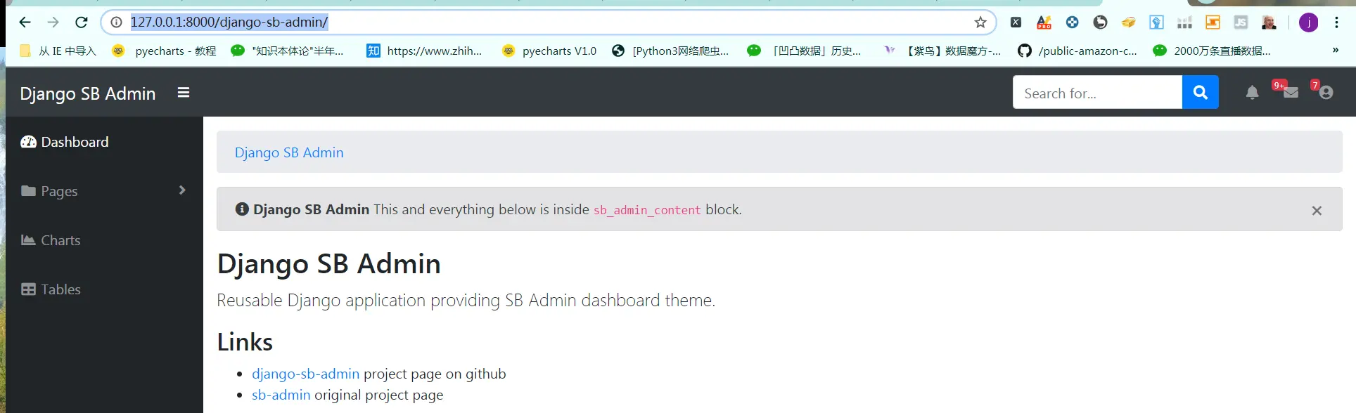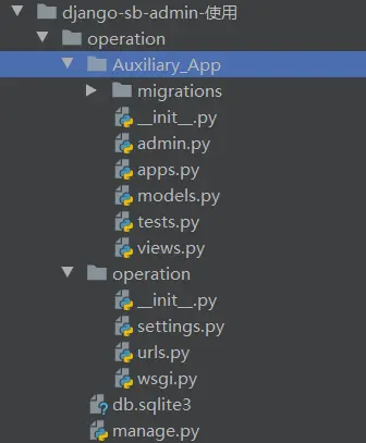 django-sb-admin 使用 结尾 2020-06-18 757 阅读1分钟 github.com/bluszcz/dja… 使用说明 官方说明最为致命 在虚拟环境中创建一个项目。django-admin startproject operation 此时的项目结构入上图。 3.python manage.py runserver 在项目文件中启动Django服务。 http://127.0.0.1:8000/ 4.pip install django-sb-admin 安装这个后台管理包 5.每一个应用(app)都是一个 Python 包 我新建了一个 python manage.py startapp Auxiliary_App 且此时的项目结构为: 6.http://127.0.0.1:8000/django-sb-admin/ 启动服务之后python manage.py runserver 7.找到sb-admin的源码文件中的sb_admin_blank.html