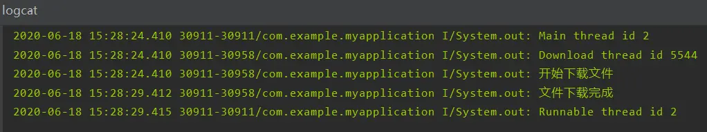 System.out.println("Download thread id" + Thread.currentThread().getId());