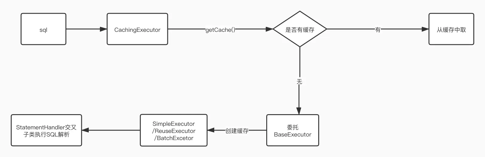 //cacheEnabled默认为true,则默认创建的Executor为CachingExecutor,并且其内部包裹着SimpleExecutor。
