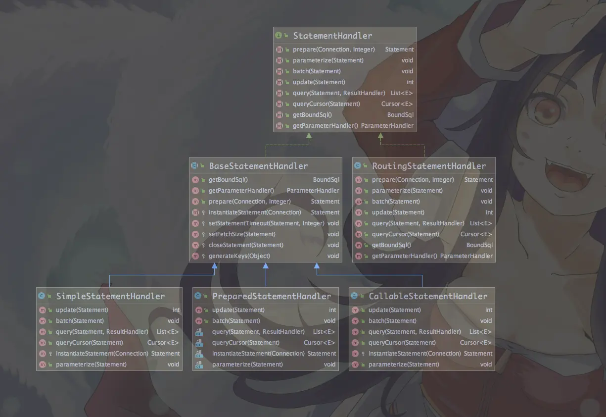 BaseStatementHandler和RoutingStatementHandler,而BaseStatementHandler分别有三个实现类SimpleStatementHandler、PreparedStatementHandler、CallableStatementHandler。