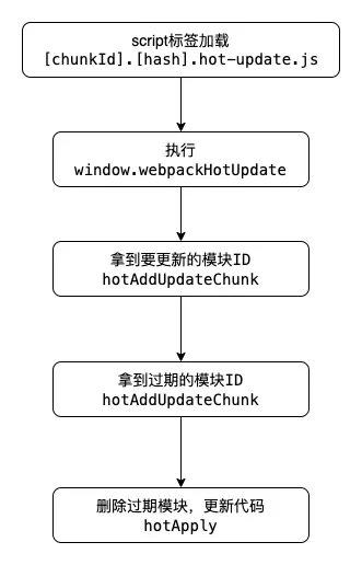 浏览器端收到本地服务通过websocket发过来的hash值,直接以脚本的方式加载更新的chunk文件,文件内容是一个自动执行的全局函数webpackHotUpdate,webpackHotUpdate的参数是chunkId以及chunk包含的模块ID和内容