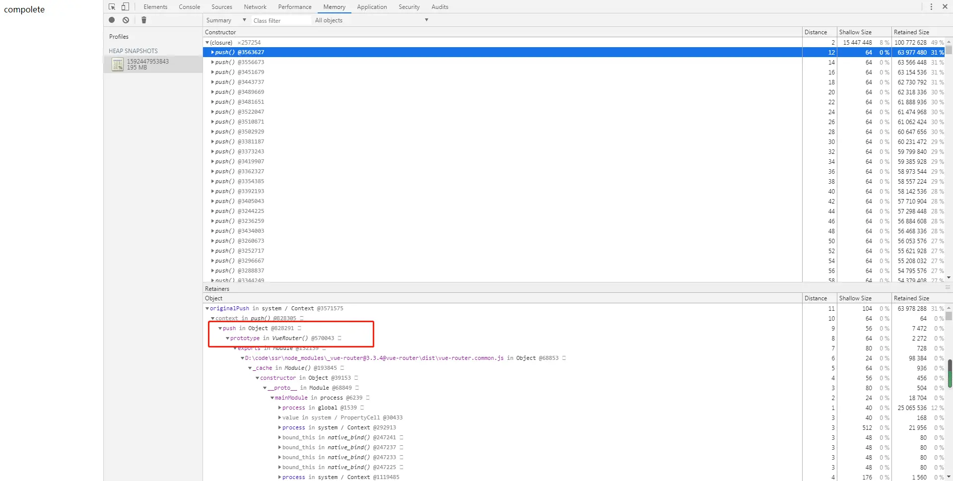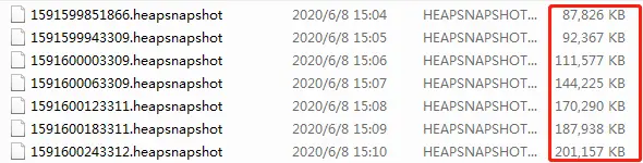2)chrome 调试器中momery模块load生成的.snapshot文件(会持续增加到1.4G)