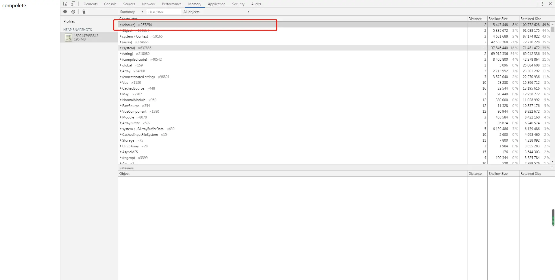 查看具体内容,发现里面的闭包引用异常: