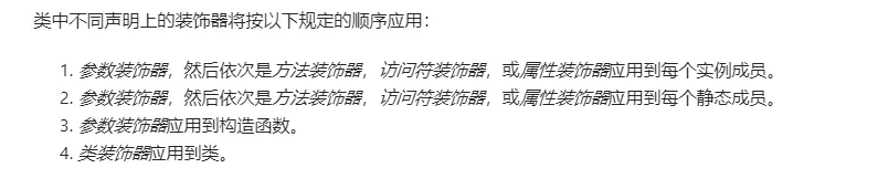 方法2利用了装饰器在类中的调用顺序,关于这个执行顺序详情可以查看官方文档ts装饰器