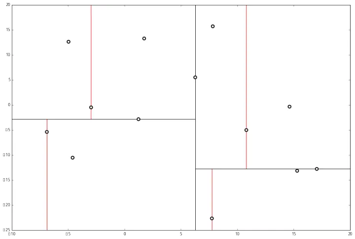 直到两个子区域没有实力存在时停止,从而形成KD-Tree的区域划分。