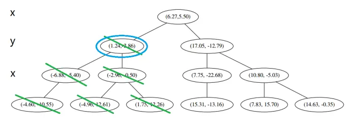 p 的 x 轴更小。因此我们向左枝进行搜索: