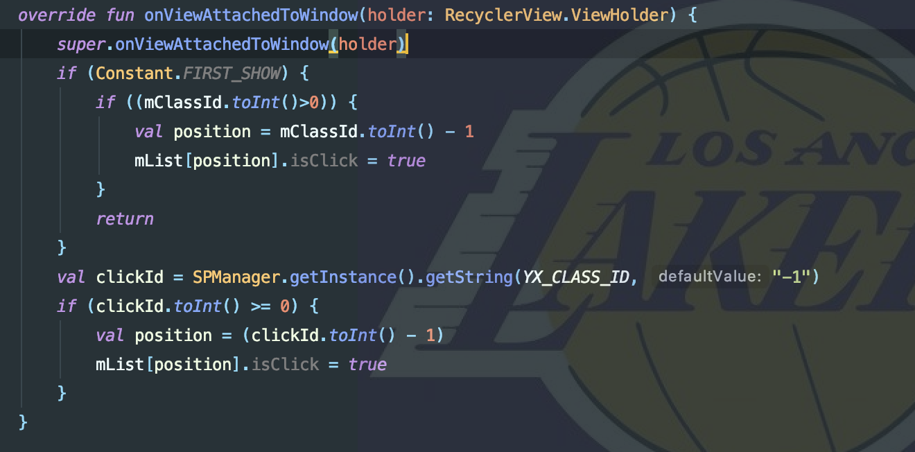 这时候我想到了一个方法onViewAttachedToWindow(),这个方法是在item在recyclerView中可见的时候调用,所以可以在这个方法里面记录点击选择的位置