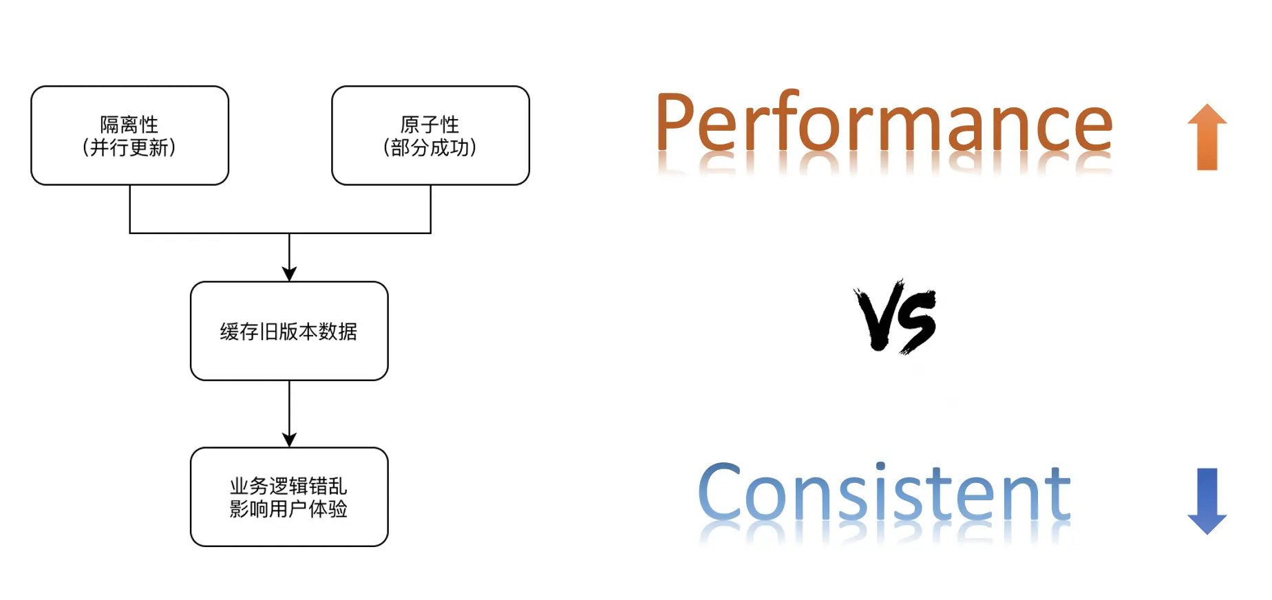 更新原子性:引入缓存后,我们需要保证缓存和存储要么同时更新成功,要么同时更新失败,否则部分更新成功就会导致缓存和存储数据不一致的问题。