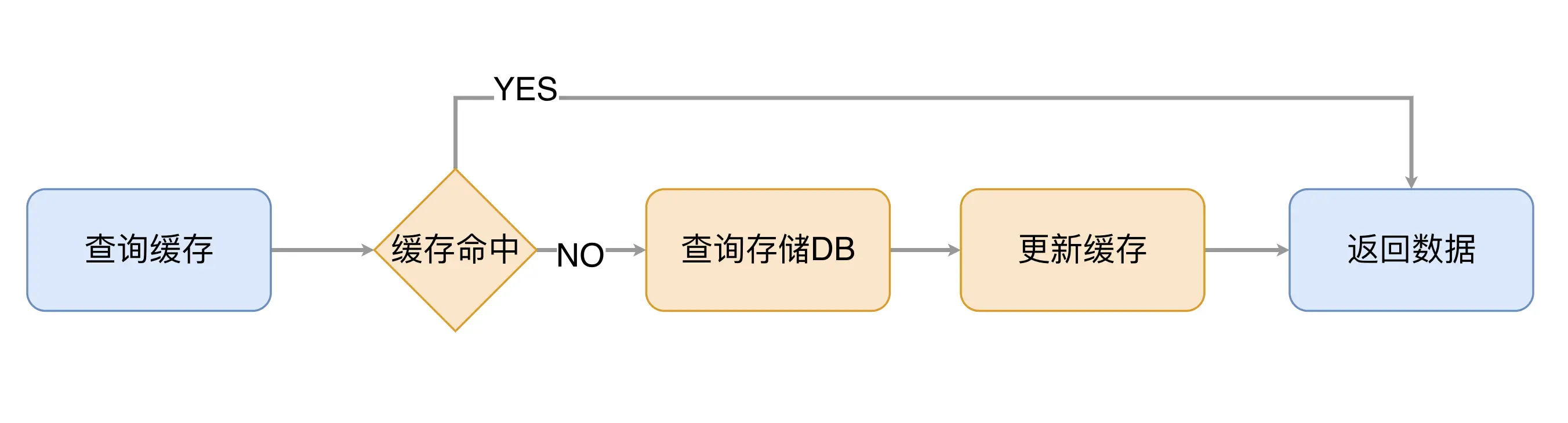 引入缓存层后,读数据就变得不是那么简单直接了,APP需要先去缓存读取数据,如果缓存MISS(数据没有被缓存),则需要从存储中读取数据,并将数据更新到缓存系统中,整个流程和代码如下所示: