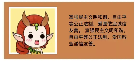 富强民主文明和谐,自由平等公正法制,爱国敬业诚信友善。