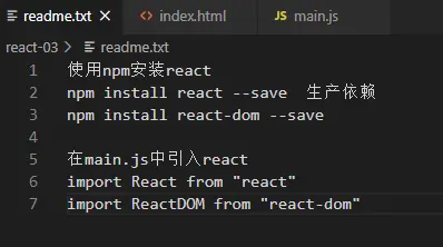 之前都是在script中引入网络上的react,现在使用npm安装react